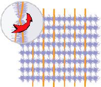 Шенилловая нить обычно располагается поперек основных нитей. Ее строение состоит из двух прочных скрученных ниток, между которыми вплетаются ворсинки. Так как она практически не растягивается, то в структуру жаккарда встает идеально. Шенилловая нить чем-то похожа гусеницу, именно эта похожесть и дала ей название «chenille» – гусеница по-французски. Ворсинки по своему составу могут быть совершенно разными: вискоза, полиэстер. Допускаются и смешанные варианты: вискоза и полиэстер; акрил и хлопок. Ворсинки придают нитке пушистость, и ткань с шенилловой ниткой выглядит спокойной и мягкой, а мебель, обтянутая такой тканью, выглядит по-домашнему уютно. На шенилле высокого качества не образуются «катышки» и, чем больше в структуре ткани шенилловых ниток, тем она стоит дороже.